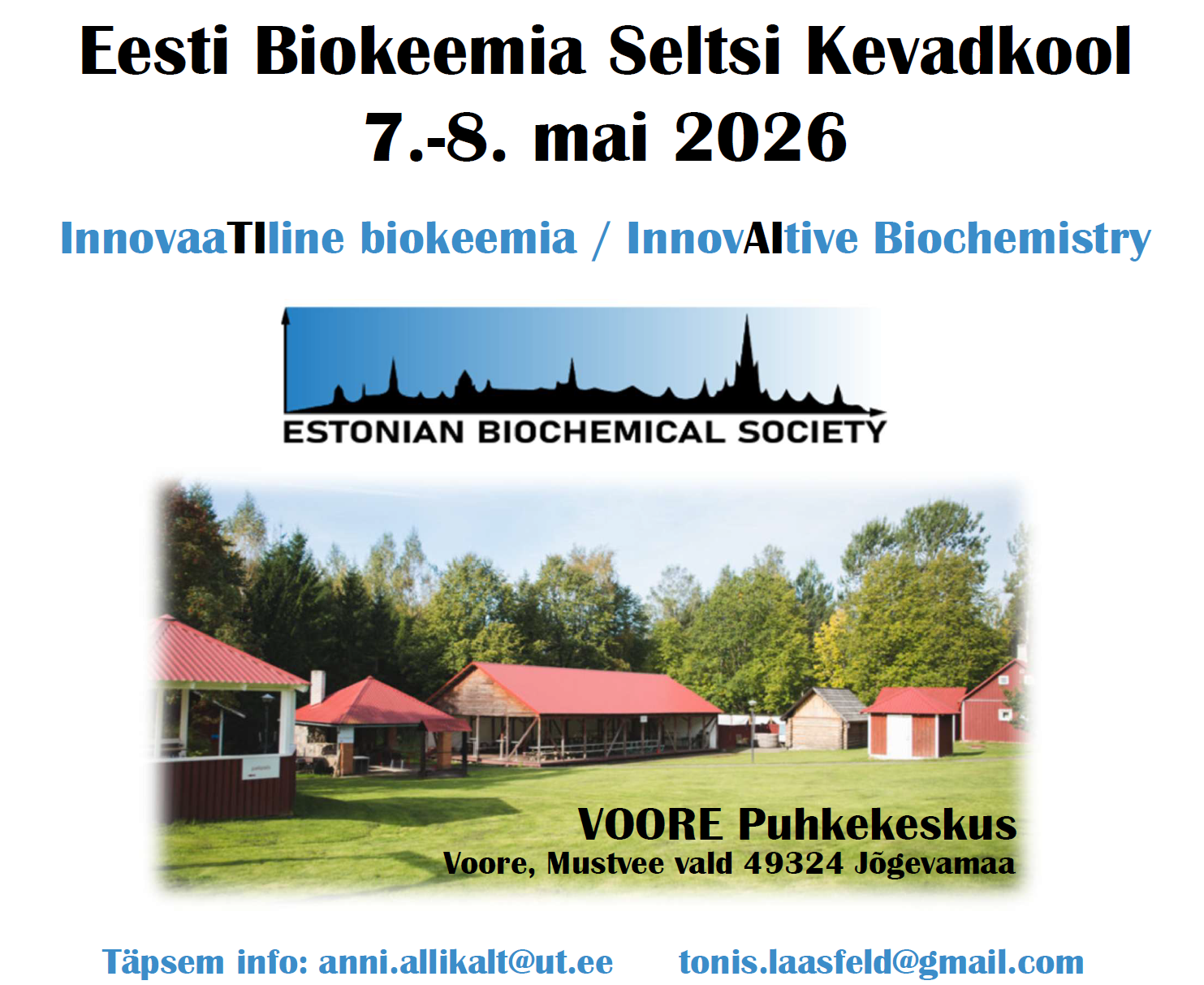 Traditsiioniline Biokeemia Seltsi kevadkool toimub sel aastal 7.- 8. mail Voore Puhkekeskuses.